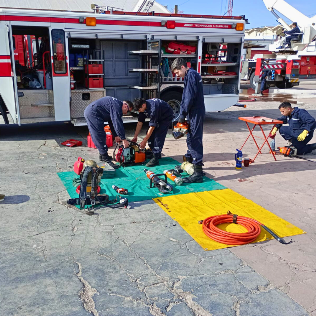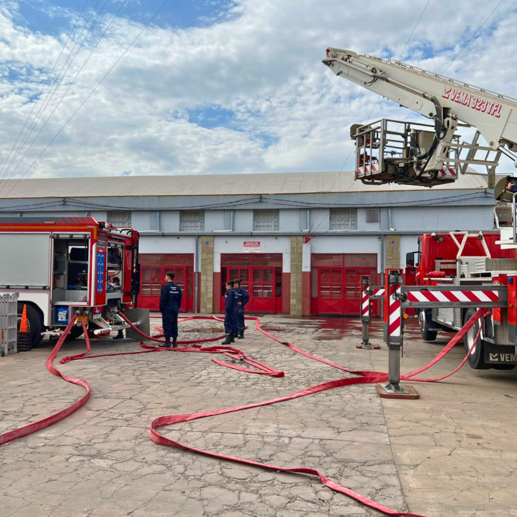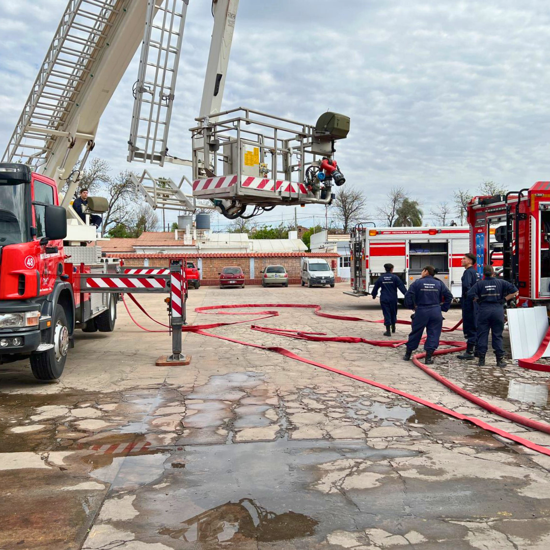 Además, realizaron ejercicios de emplazamientos de sistemas de agua, control de bombas y cadena de bombas para incendios de grandes superficies o en altura.