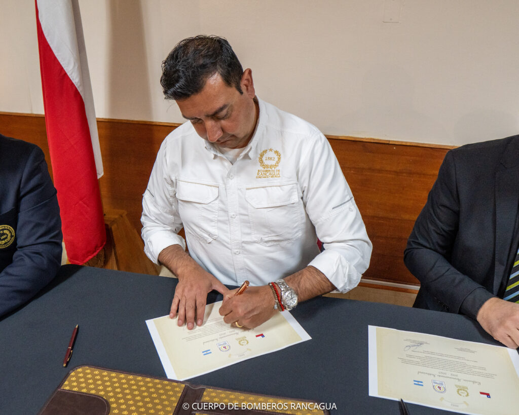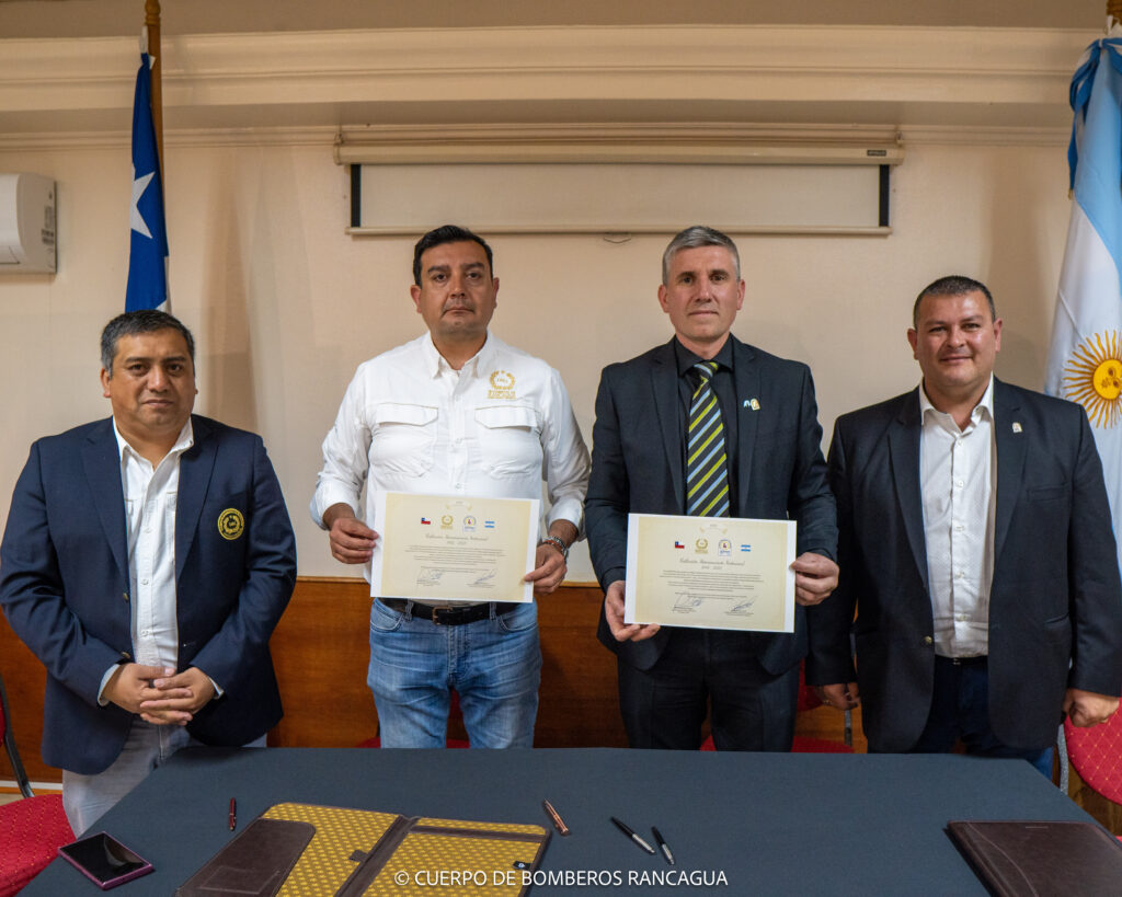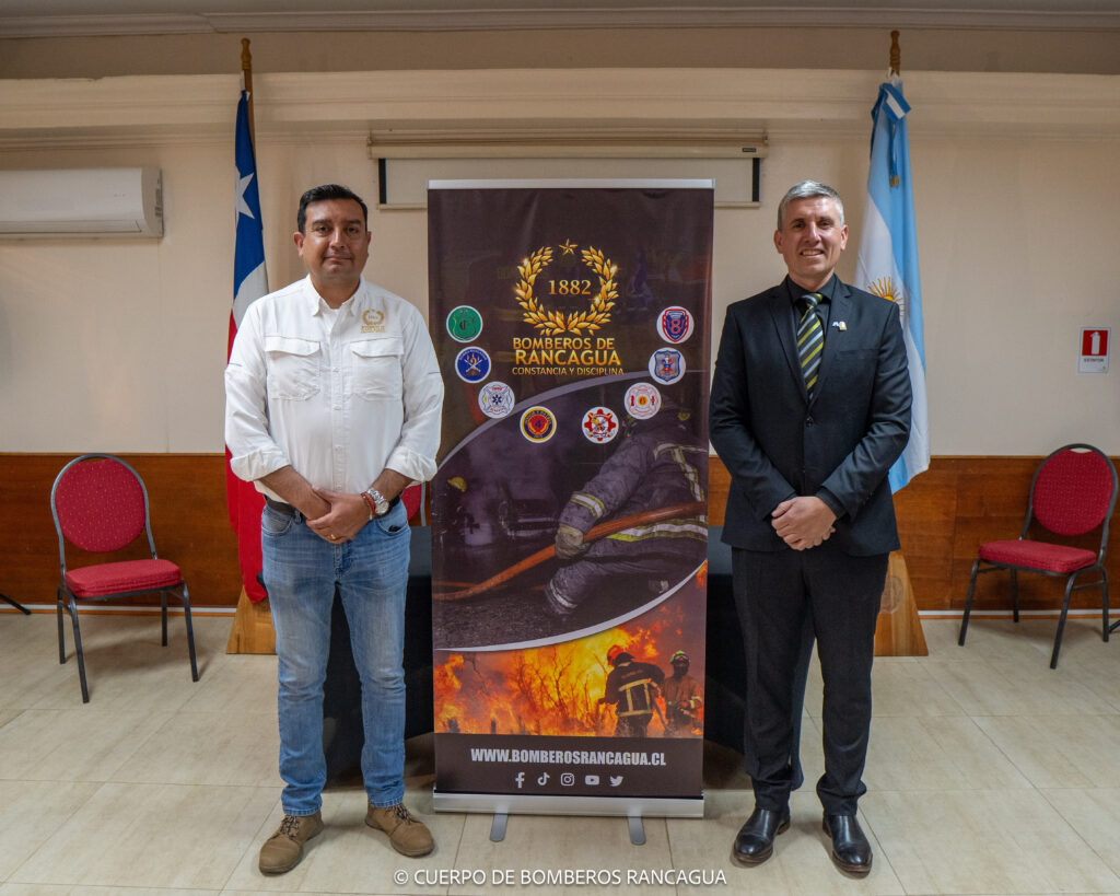 Este fin de semana, el presidente de la institución Rodrigo Franceschi, el secretario Javier Panero, el Jefe de Cuerpo Activo Crio. Gral. Diego Gaetan y el Of. Ayte. Cristian Di Giovanni viajaron a Chile para encontrarse con el Superintendente Raúl Montecinos Reveco, el Comandante José Villalobos Aravena, y demás miembros del Directorio de Bomberos Voluntarios de Rancagua, con el objetivo de retomar las relaciones de hermandad existentes entre ambos organismos.