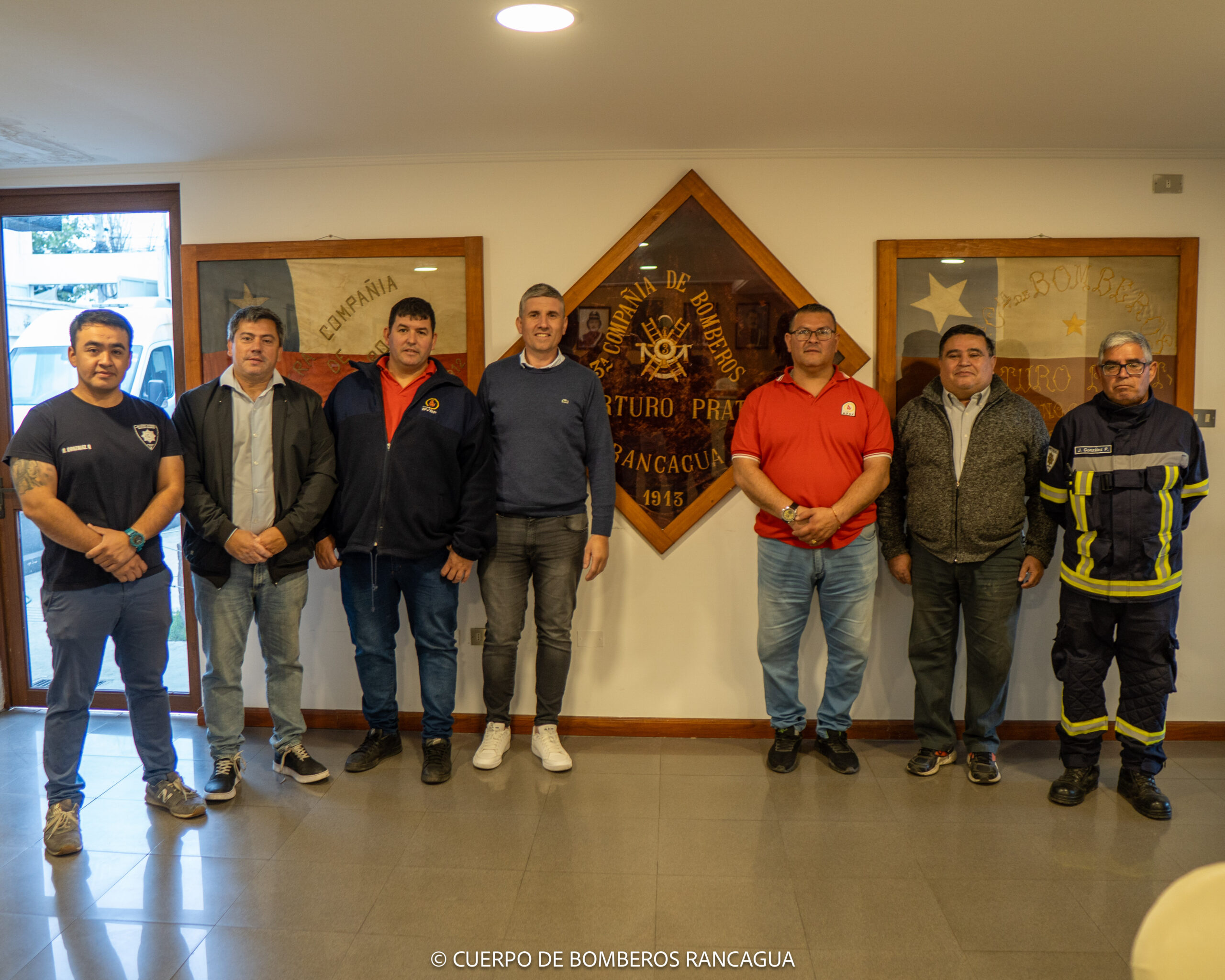 Este fin de semana, el presidente de la institución Rodrigo Franceschi, el secretario Javier Panero, el Jefe de Cuerpo Activo Crio. Gral. Diego Gaetan y el Of. Ayte. Cristian Di Giovanni viajaron a Chile para encontrarse con el Superintendente Raúl Montecinos Reveco, el Comandante José Villalobos Aravena, y demás miembros del Directorio de Bomberos Voluntarios de Rancagua, con el objetivo de retomar las relaciones de hermandad existentes entre ambos organismos.