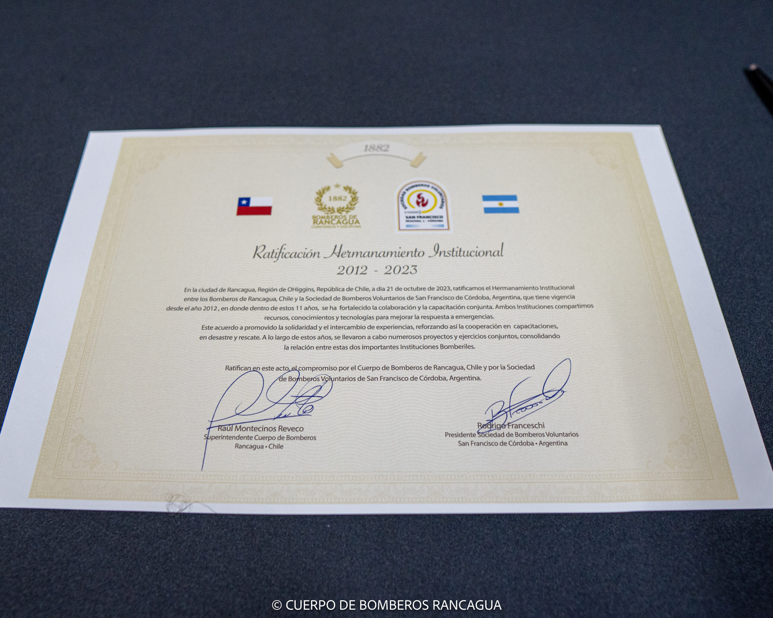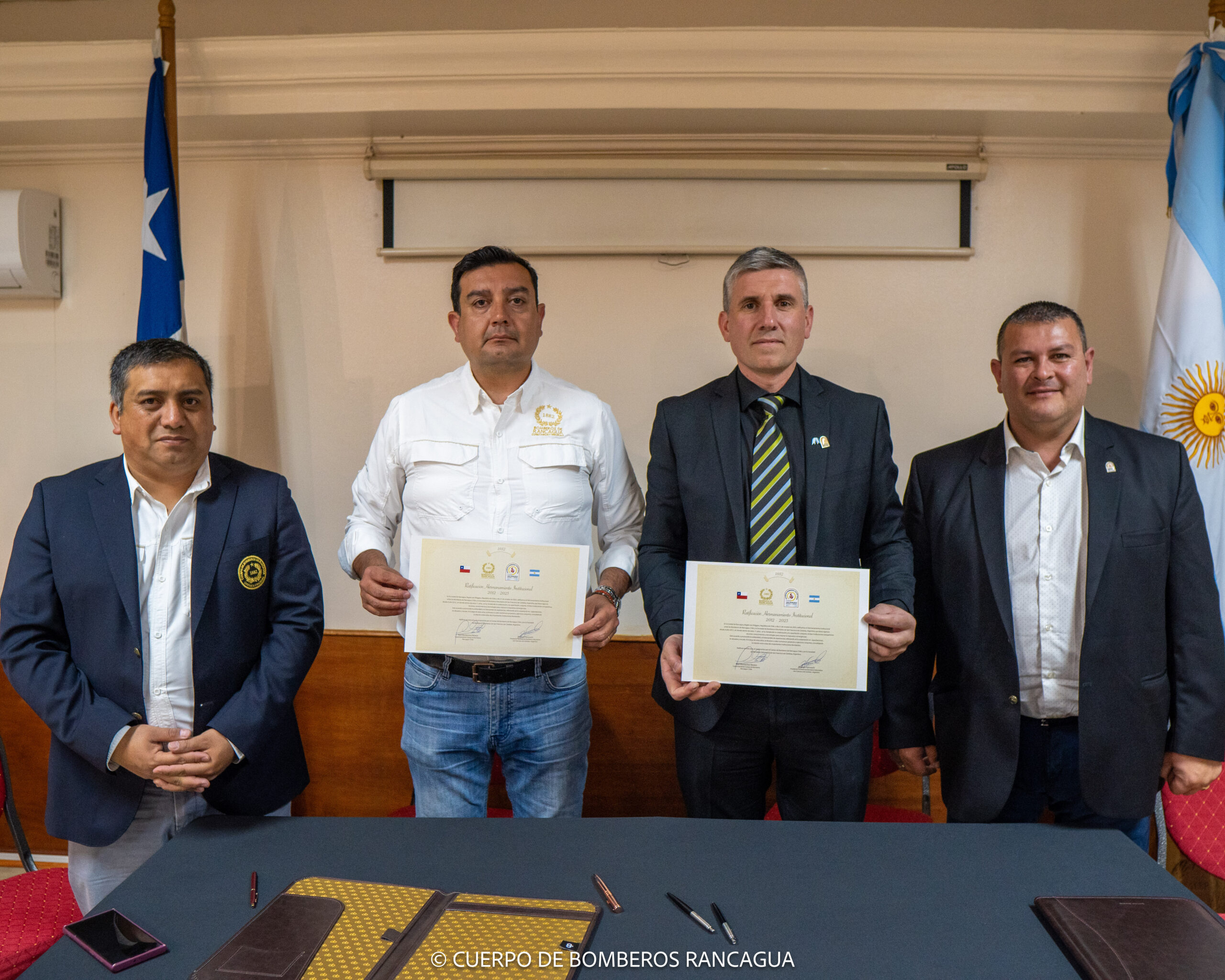Anteriormente, en el año 2012 se firmó el hermanamiento entre nuestra institución y el Cuerpo de Bomberos Voluntarios de Rancagua, con el objetivo de trabajar conjuntamente para capacitar al personal y mejorar la forma de trabajo y respuesta ante emergencias.
