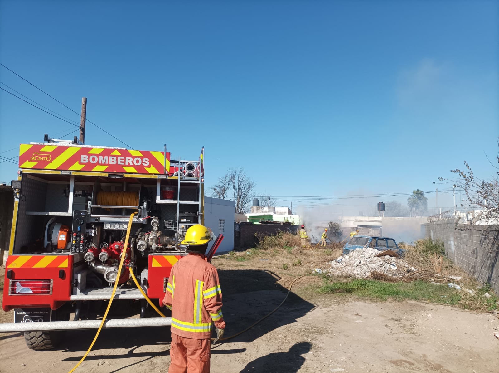 ▶️ Cerca de las 11:45, asistimos a un incendio de baldío en barrio La Milka, el cual implicaba riesgo de propagación a una vivienda aledaña.