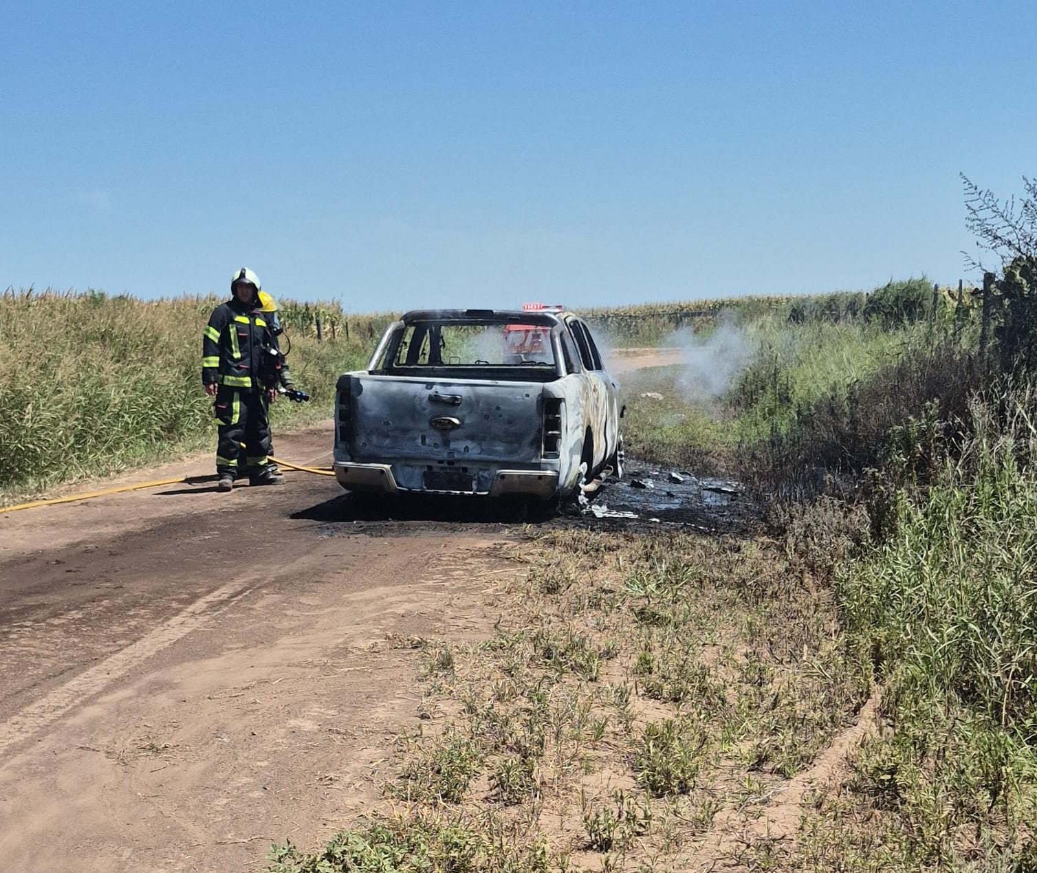 Personal de nuestra institución trabajó con dos dotaciones en la zona rural de Quebracho Herrado, tras ser alertados por un incendio en una camioneta.