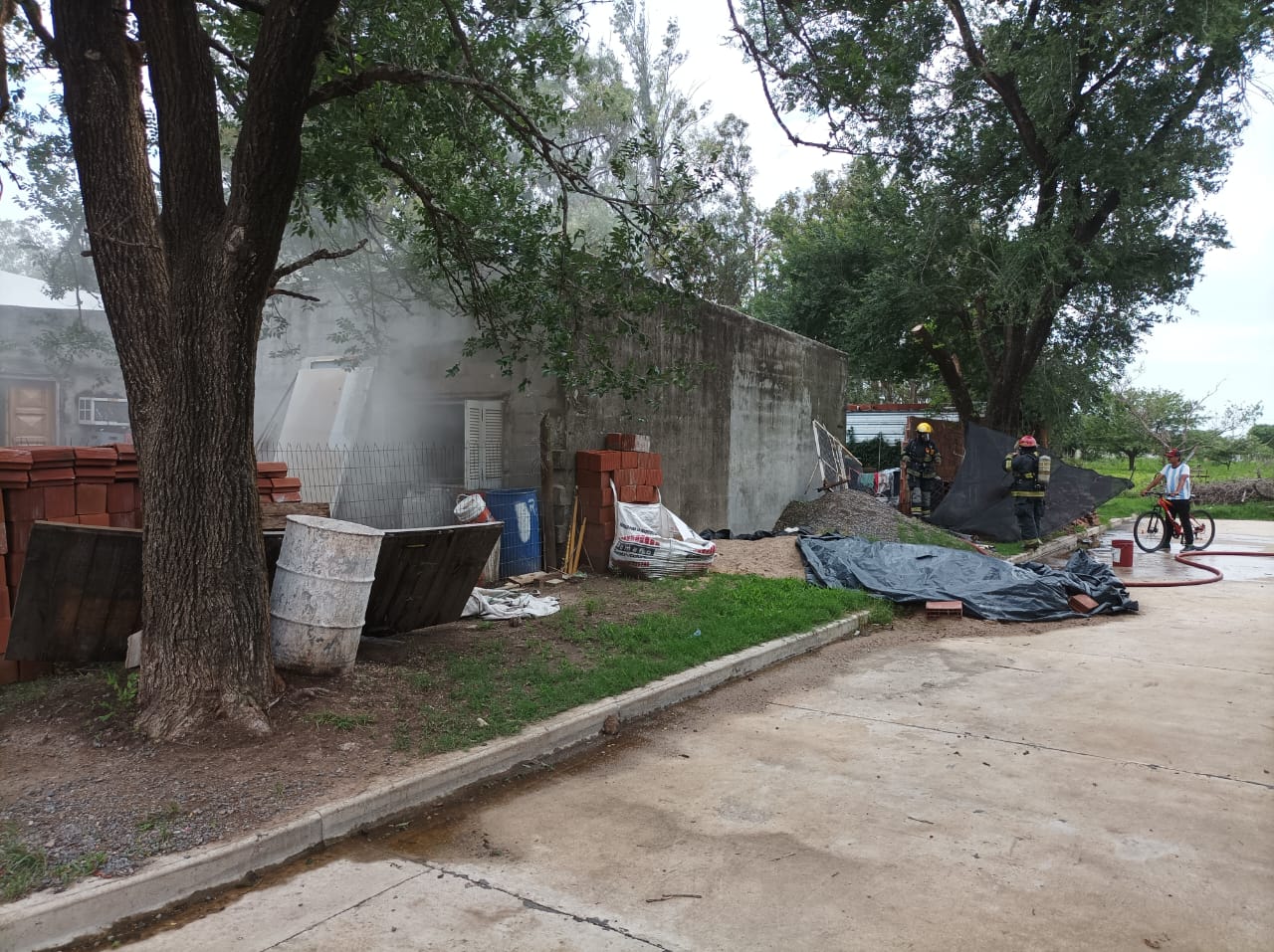 Trabajamos en Illia 1400 por el incendio en el interior de una vivienda.Realizamos trabajos de extinción y ventilación en el domicilio.Estuvieron presentes en el lugar Cruz Verde, Policía y personal municipal.