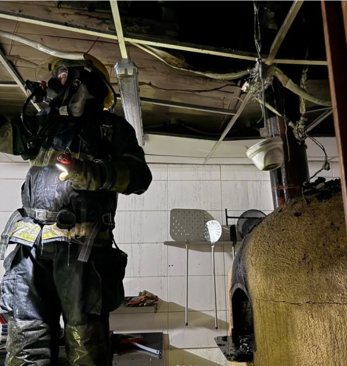 El alerta fue dado por un vecino que advirtió la presencia de humo proveniente del interior del comercio. Al arribar al lugar, constatamos que el fuego afectaba parte del cielorraso de machimbre en el sector de cocina.