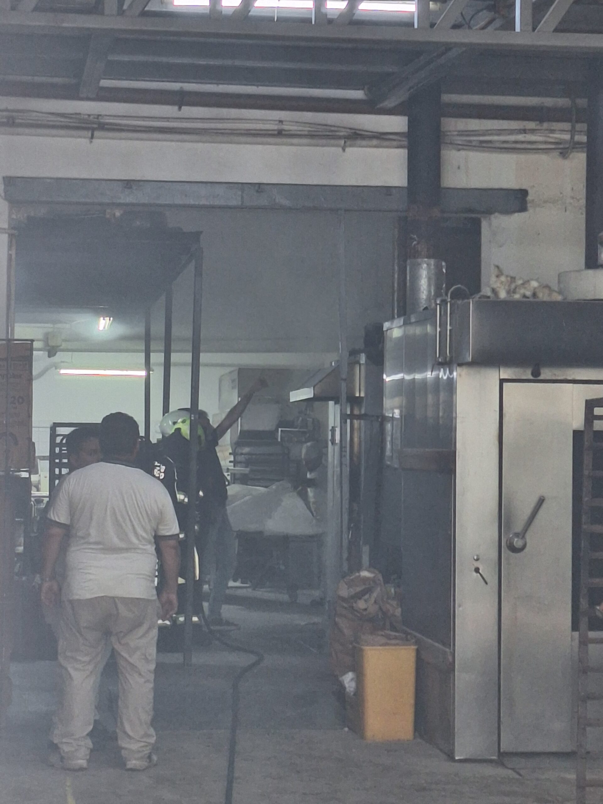 Pasadas las 10:30 horas, nuestro equipo fue convocado por un incendio en un horno rotativo de panadería, donde el fuego afectaba parte del sistema de extracción en la chimenea y la cámara de combustión.