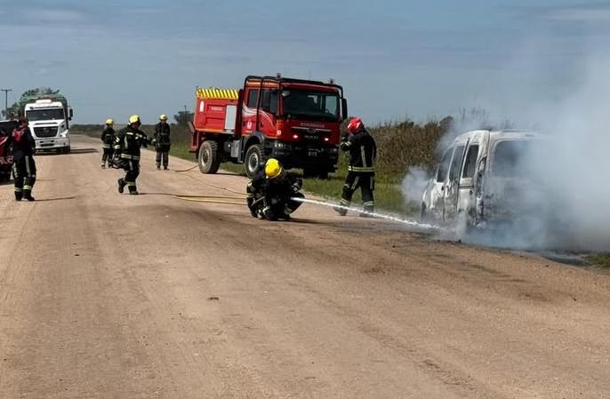 Al arribar al lugar, el personal se encontró con un incendio generalizado en una camioneta Renault Kangoo, por lo que se iniciaron de inmediato las tareas de extinción para controlar las llamas y evitar su propagación.