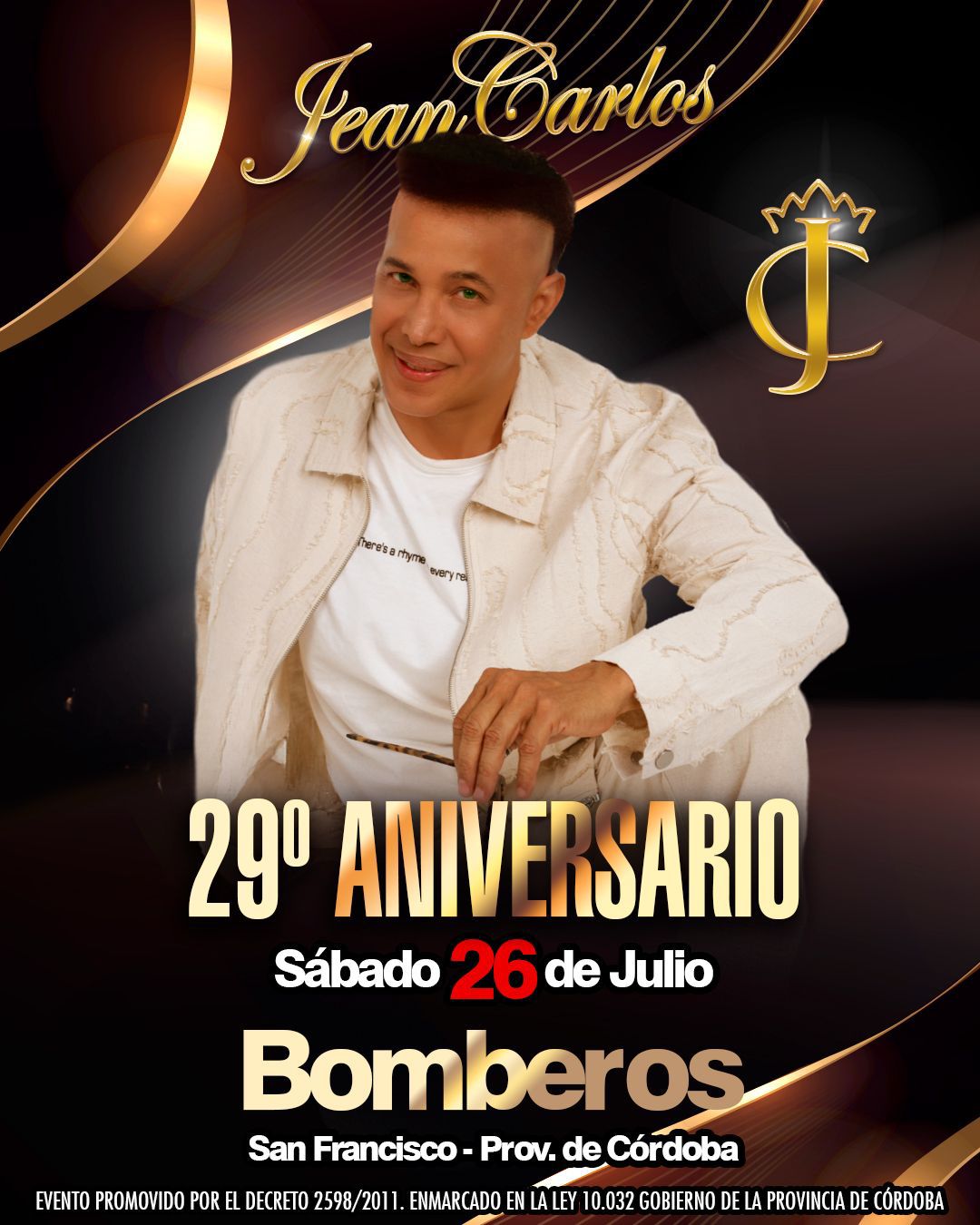 El reconocido cantante Jean Carlos regresa a San Francisco para presentarse el sábado 26 de julio en El Gigante de Bomberos, en lo que promete ser una noche inolvidable para los fanáticos del ritmo más popular de Córdoba.