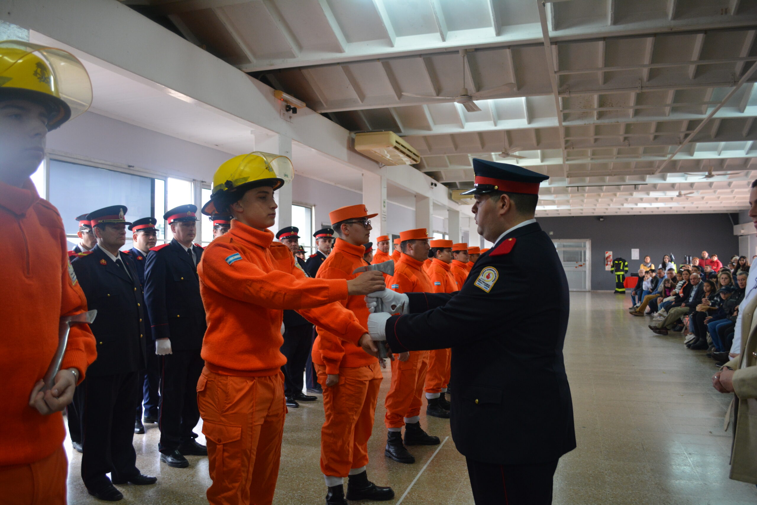 Cómo marca la tradición, recibieron de parte de familiares y padrinos bomberiles el casco de intervención, en señal de protección, un hacha, en representación de las herramientas de trabajo, y el atributo oficial del nivel educativo alcanzado, simbolizando la formación profesional.
